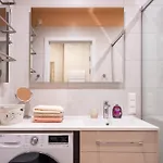 In dit appartement zijn een apart toilet, een douche en een wasmachine voorzien om uw comfort te vergroten. Er zijn ook een haardroger en handdoeken.